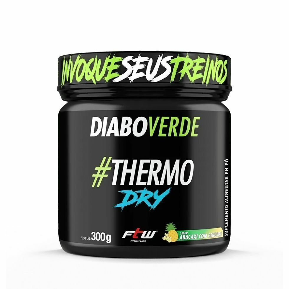 Diabo Verde #THERMO DRY (300g) - FTW Sports NutritonAté a última gota!     O produto que veio para revolucionar, com ingredientes selecionados, e com alta concentração de antioxidante. A tecnologia aliada ao acesso dos melhores ingredientes disponíveis do mercado, criamos o #THERMO DRY onde realmente vai até a última gota.O que é o Diabo Verde #THERMO DRY?     Cada substância escolhida para o #Thermo Dry Diabo Verde foi pensada exclusivamente para o melhor desempenho das vias metabólicas do nosso organismo. A combinação perfeita para sua dieta.Como tomar:     A melhor maneira de como consumir o #Thermo Dry Diabo Verde da FTW dependerá de cada caso. Por isso, é necessário consultar um profissional da saúde para acrescentar esse produto em sua rotina. Dessa forma irá depender da demanda do organismo de cada um. De qualquer forma em nossa embalagem recomendamos: Consumir de 1 a 2 porções diárias no intervalo das refeições ou a critério médico/nutricionista.Benefícios:* Força e Disposição para treinos mais duradouros;* Maior vasodilatação dos vasos sanguíneos; * Acelera o crescimento muscular;* Aumento prolongado da energia;